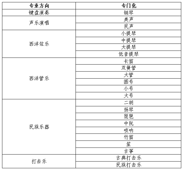 注:浙江省音乐表演专业录取时仅按照考生填报的第一个分专门化方向的音乐表演专业进行录取,且该专业的专门化方向须为本人省统考的测试专门化方向之一。
