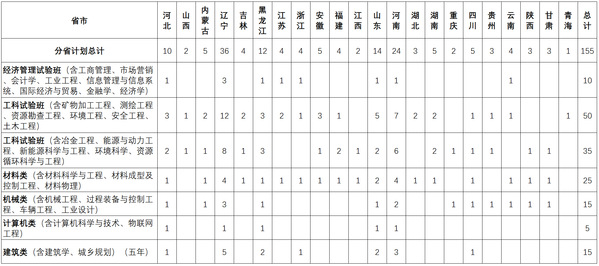 东北大学2022年高校专项计划分省分专业(类)招生计划