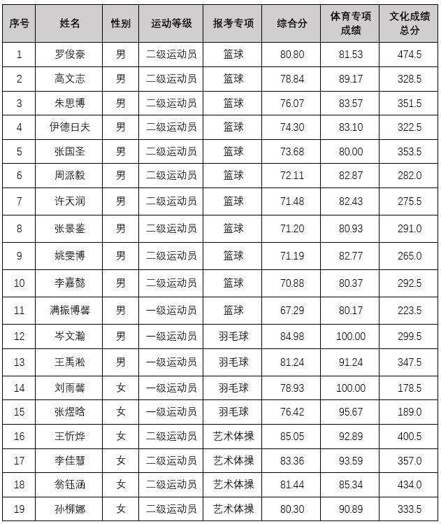 根据《2023年普通高等学校运动训练、武术与民族传统体育专业招生管理办法》(体科字〔2022〕224号)要求,按照《东北大学2023年运动训练专业招生简章》有关规定,现将拟录取考生名单进行公示,希望社会各界予以监督。公示期到5月30日17:00截止。电话:024-83687392、23891272(传真)。最终录取名单以教育部、国家体育总局及各省招生考试机构审核通过为准。