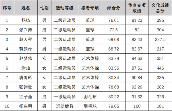 根据《2024年普通高等学校运动训练、武术与民族传统体育专业招生管理办法》(体科字〔2023〕188号)要求,按照《东北大学2024年运动训练专业招生简章》有关规定,现将拟录取考生名单进行公示,希望社会各界予以监督。公示期到6月3日17:00截止。电话:024-83687392、23891272(传真)。最终录取名单以教育部、国家体育总局及各省招生考试机构审核通过为准。
