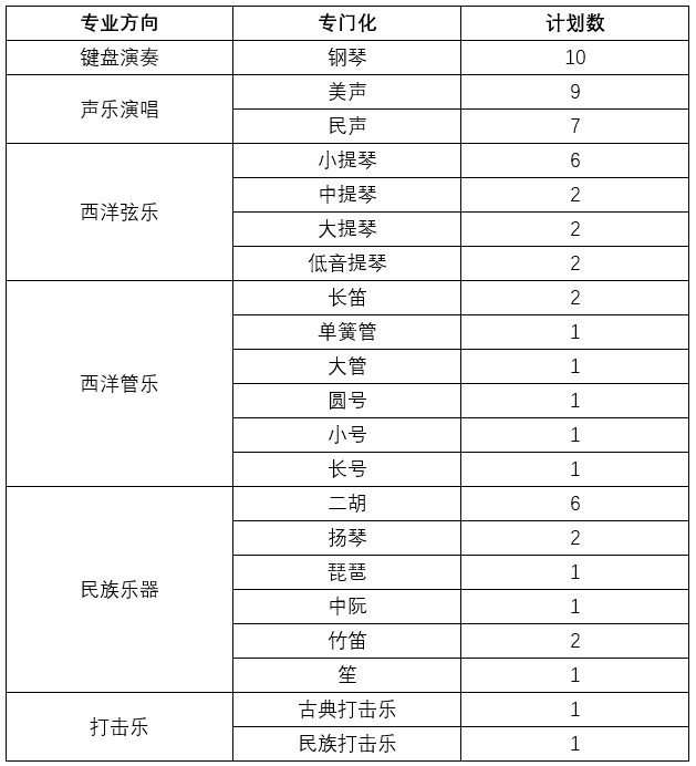 1.各省考生须参加所在省组织的音乐类专业统一考试,录取时使用所在省提供的专业统考成绩。
