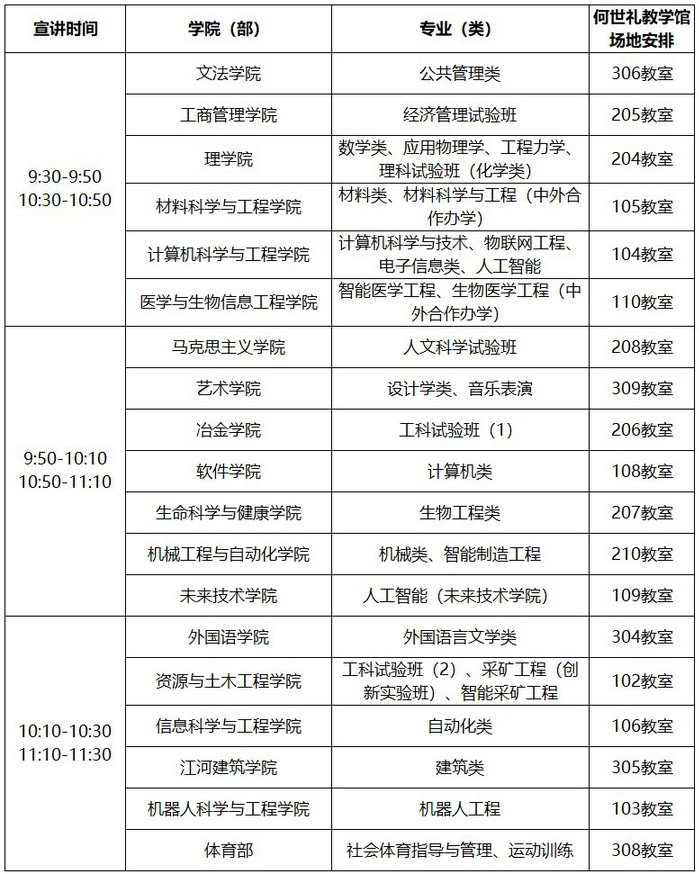 东北大学2024年招生专业(类)宣讲时间安排